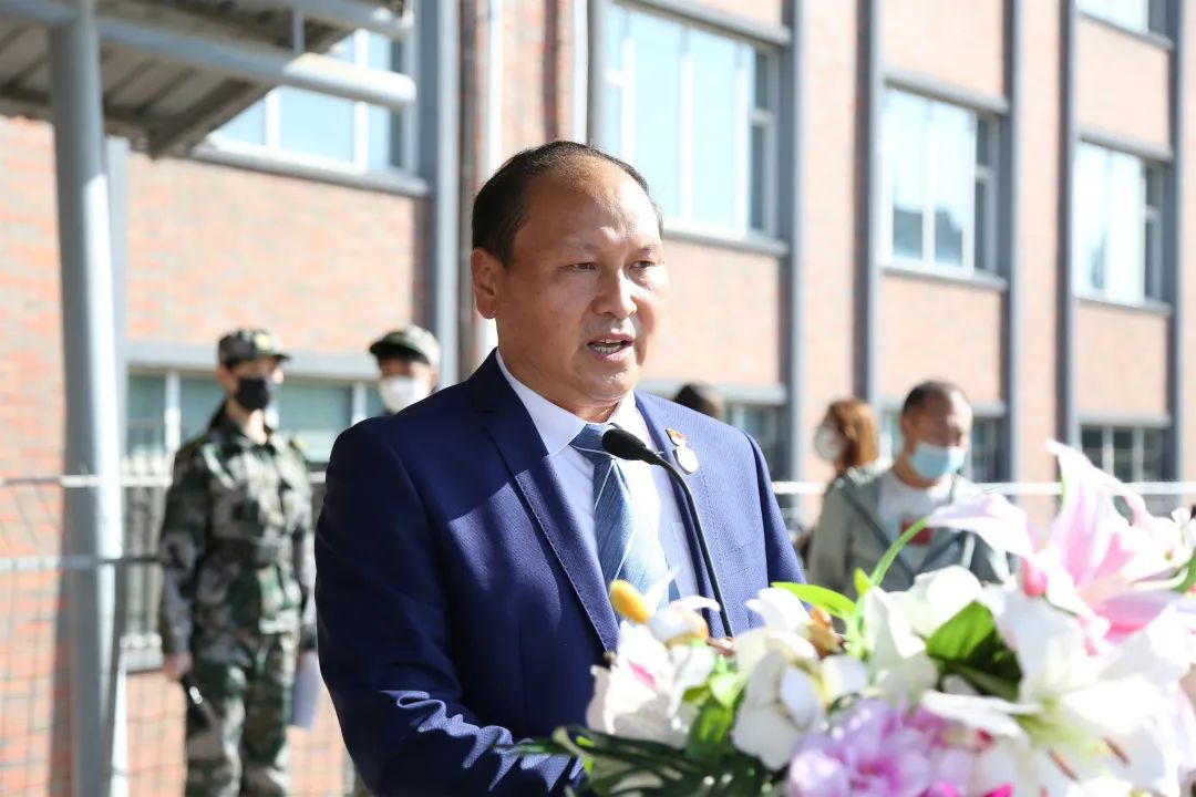 青春因此而精彩,回忆因此而无憾;军训的战歌响起,迷彩的英姿焕发出新的活力。为实践“立德树人”根本任务,8月30日,必赢565net官网2021级新生军训开营仪式在学校操场上隆重举行。中国人民解放军93246部队71分队副队长李小波,必赢官网党委书记张炬,副董事长刘欣,常务副校长刘振华,副校长王春利,纪委书记王晓岩,校长助理彭巍和董事会监事、人力中心主任许小多,93246部队各位教官,各学院、各部门领导、老师以及全体新生辅导员共同参加了开营仪式。必赢官网党委副书记、副校长张砚为主持开营仪式。