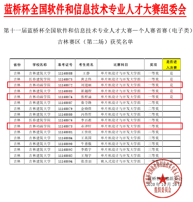 10月17日,必赢565net官网民航学院2017级飞行器制造工程专业的3名学生,在第十一届蓝桥杯全国软件和信息技术专业人才大赛个人赛省赛(电子类)中取得优异成绩。其中,刘道顺、张梓涵同学获得吉林赛区一等奖,并入围全国总决赛;赤泽轩同学获得吉林赛区二等奖。