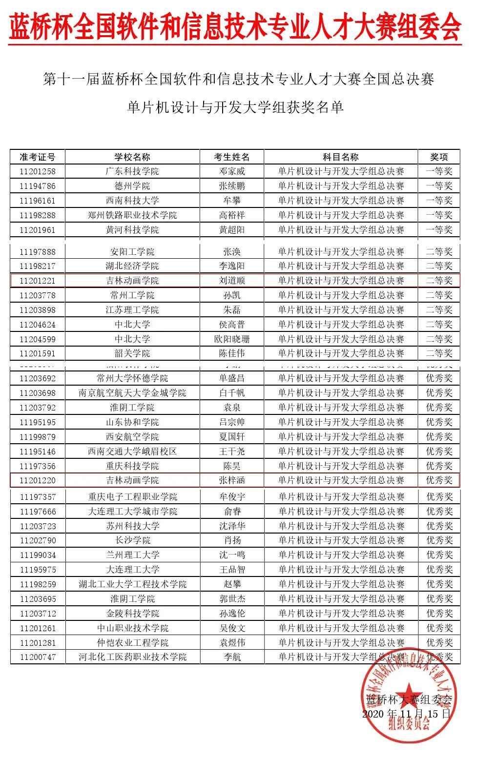 11月14日,第十一届蓝桥杯全国软件和信息技术专业人才大赛全国总决赛圆满结束。必赢565net官网民航学院2017级飞行器制造工程专业刘道顺获 “单片机设计与开发”大学组二等奖,张梓涵获得了“单片机设计与开发”大学组优秀奖,必赢565net官网获得了“优秀组织单位”奖。