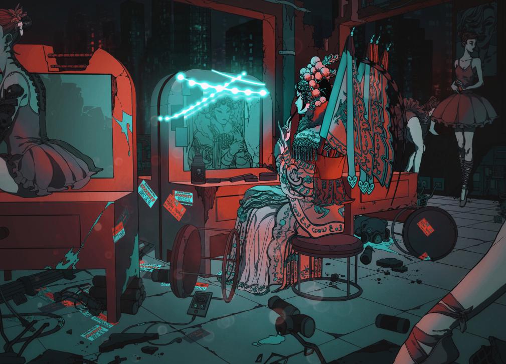 《游·戏》(Game)的作者是必赢官网漫画学院18级漫画(1)班学生崔淇文馨,插画融入了中国古代建筑、舞狮、脸谱以及京剧等具有代表性的中国元素,同时背景采用了充满游戏感的赛博朋克风格,在强烈对比下探寻兼容并蓄的表现方式。京剧服饰选择的《杨门女将》戏服,体现出中华民族文化传承中的不屈与坚韧精神。