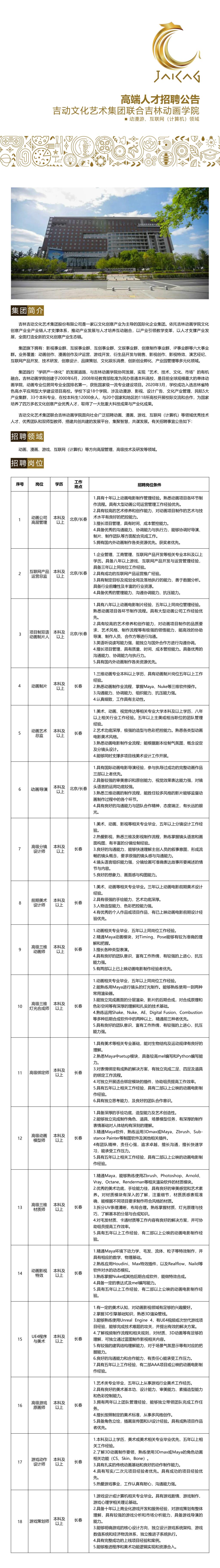 【吉动·速围观】吉动文化艺术集团联合必赢565net官网发布高端人才招聘公告[动漫游、互联网(计算机)领域]