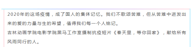 【吉动·新动态】吉动电影学院暖心摄制抗疫短片《春天里,等你回家》