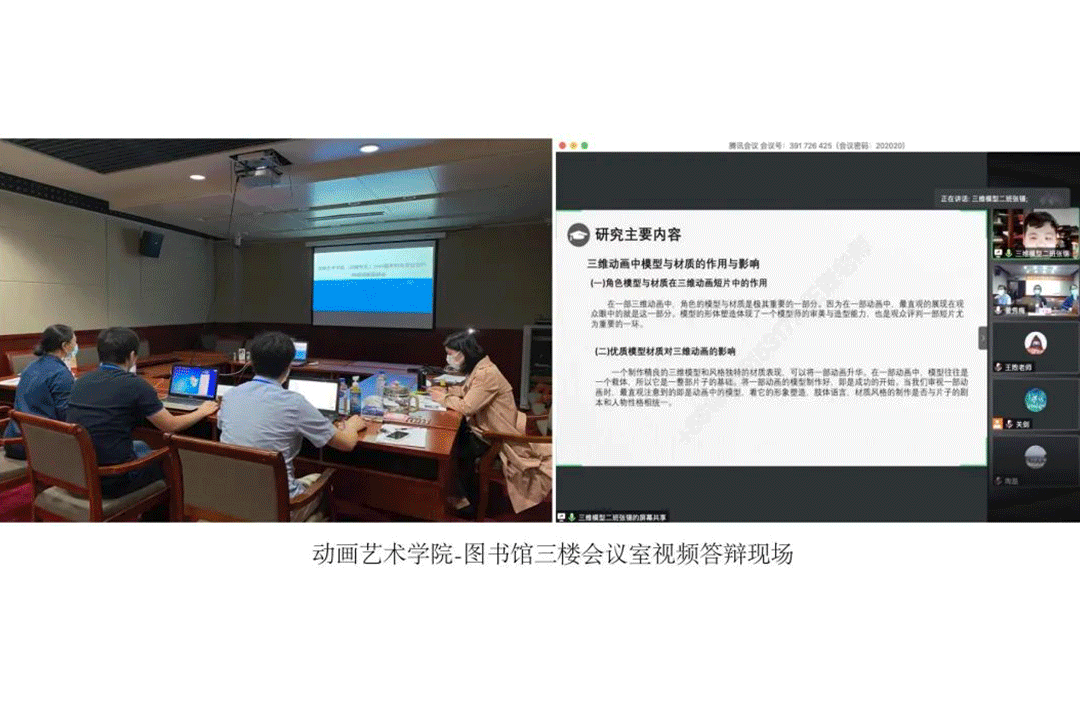 正式答辩开始前,所有组别学生分别在对应的腾讯会议室、钉钉会议室、QQ群、微信群等线上平台候场。会议主持教师先组织学生进行了身份验证,学生手持身份证和学生证,与本人在线视频进行比对。学生围绕选题背景、选题意义、研究内容、研究成果、创新点、遇到的问题等方面,进行不少于5分钟的汇报和成果展示。随后各答辩组教师就学生作品(论文)和阐释内容等方面提出了3-5个专业问题,并就答辩整体情况现场给学生打分。整个答辩环节完整、规范、有序。