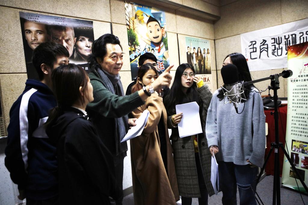 谈到目前的教学工作,他表示,如何让学生在学的过程中进步得更快、提升得更快,需要教学方法观念和思路要有一个大的改变。正像有人说“老师是良心活儿”,一定不要走过场,要用心去教学生,真正把自己的技能传授给学生,让他们在更多的实践中去提升得更快,能够适应当下社会发展的主潮流。现在市场的需求越来越宽泛了,这种多元化发展格局要求学生不仅要掌握配音的技能,同时经过两年的配音实践工作、创作实践后,在语言表达上更鲜活,对语言驾驭能力更好,今后每个同学今后就业机会、渠道会更多,对学生能力的提升有很大的帮助。目前,配音市场需求量很大,除了专业译制片厂,很多动漫公司需要大量专业配音人才,而且收入不菲,尤其在北上广深发展机会很多。