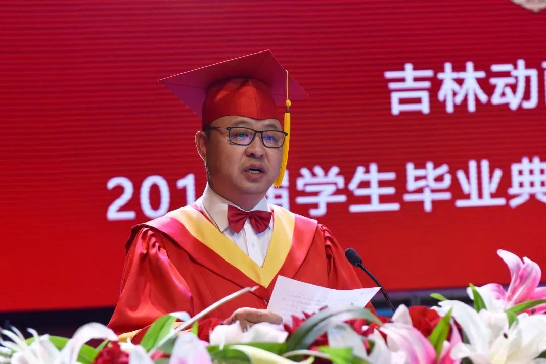 毕业典礼上,学校副校长王春利宣读准予2019届张兆坤等3022名学生毕业的决定;学校董事会监事、总督学、学位评定委员会副主任朱莉宣读授予2019届2985名学生学士学位的决定;学校党委书记、省教育厅督导专员张炬宣读授予王莹等150名学生2019届优秀毕业生的决定;学校副董事长、副校长刘欣宣读表彰2019届毕业生平台力行奖学金获得者的决定;学校副校长、吉动文化艺术集团高级副总裁白立明宣读收藏2019届优秀实物毕业作品的决定。