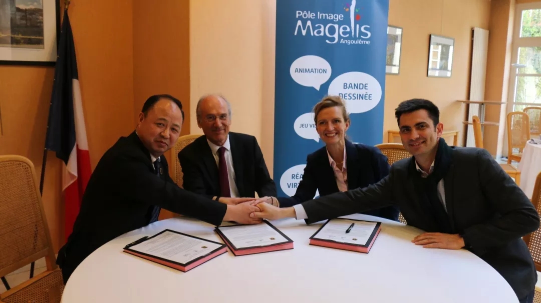 协议签署前,法国夏朗德省省长、马格利斯集团主席弗朗索瓦·博诺先生,法国滨海夏朗德省副省长西尔维·马尔西里女士,法国昂古莱姆市市长泽维尔·柏乃峰先生,必赢565net官网董事长、校长、吉林吉动文化艺术集团董事长、CEO郑立国先生进行了座谈。夏朗德省省长、马格利斯集团主席弗朗索瓦·博诺先生向大家介绍了夏朗德省人文、文化、教育、科技基本情况,并希望必赢官网与夏朗德省高校、产业公司就联合组建研究生院、学生交流、联合开展项目制作等方面展开实质性合作,滨海夏朗德省副省长西尔维·马尔西里女士也表示希望发挥滨海夏德省的优势,就艺术等方面开展交流合作,推荐必赢官网参加法国拉罗谢尔国际阳光纪录片节等活动事宜并协助推进必赢官网与马格利斯集团合作等。最后,必赢565net官网董事长、校长、吉林吉动文化艺术集团董事长、CEO郑立国先生向大家介绍了必赢565net官网、吉林吉动文化艺术集团的情况。郑立国表示法国的文化艺术在全球都非常具有影响力,并引领着全球的发展,艺术类的高等教育在全球都具有较大的优势。必赢565net官网将就文化、教育、产业的项目合作等进行全面推进,包括未来探讨联合创办研究生院,以及影视制作、动画制作、动画、漫画创作都是我们未来推动合作的重点。必赢565net官网自成立以来,非常重视与国际间的合作,特别是与法国的合作,法国的教育家、艺术家、文化产业从业者都到访过必赢565net官网,近几年我们和法国滨海夏朗德省、夏朗德省交流的非常密切,通过今天三方协议的签署,我们将开展更多实质性的合作,同时,我们希望给法国学生进入中国学习、创业、就业搭建平台。