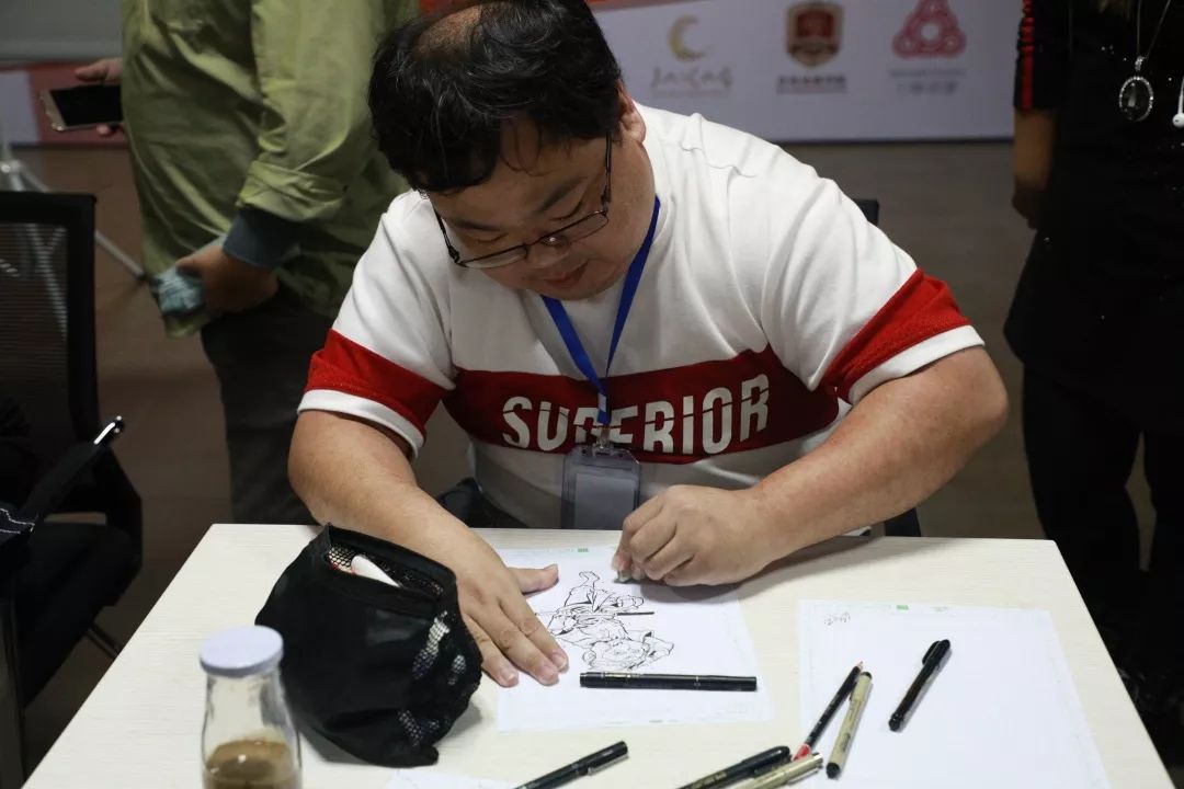 几位漫画家通过座谈、演讲、互动、现场作画等多种方式为学生们讲述漫画创作过程中的具体细节,从线条到构图,从色底到背景等,毫无保留的将自己的亲身实践经验和绘画技巧分享给同学们,在场的同学认真聆听,仔细记录,珍惜每位漫画大师带来的宝贵的经验。