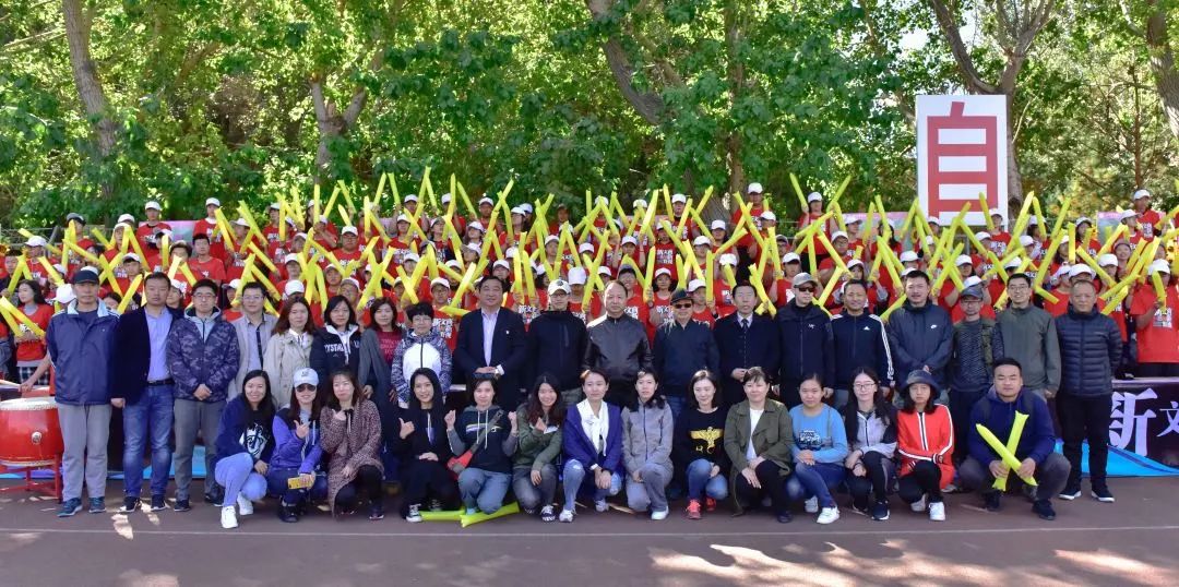 伴随着运动会赛事紧张激烈的进行,董事长郑立国带着学校领导班子成员来到每个单位、学院组织的观众席前,向为运动员加油助威的观众们亲切问候,与各分院的学生和运动员们以及教职工合影留念,迎来一阵阵的欢呼声和掌声。