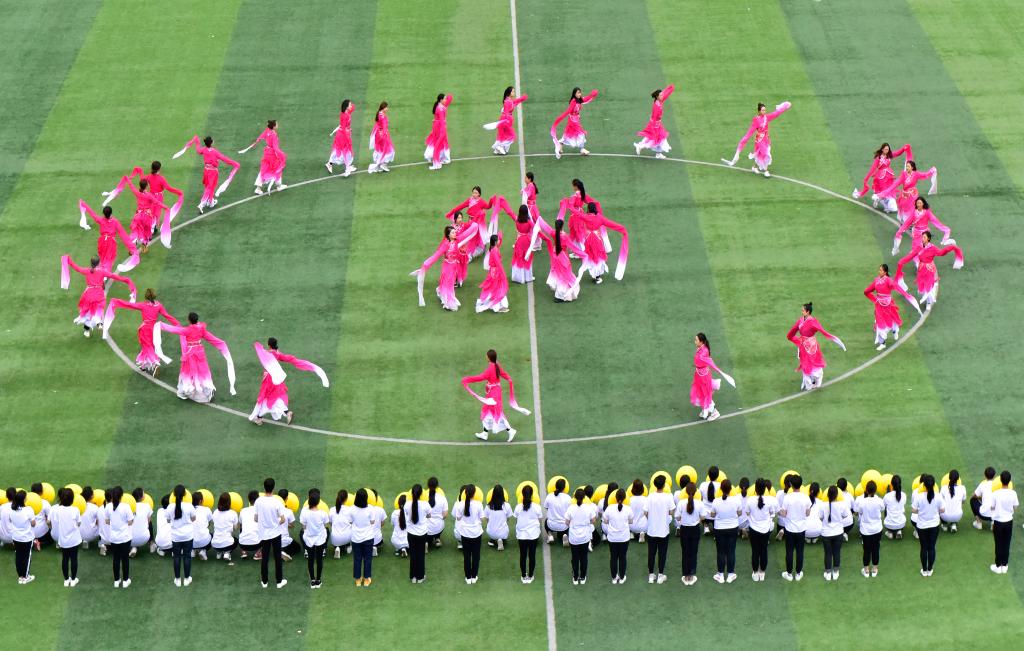 下午3点40分比赛结束。所有方阵再次集结到运动场上,接受着属于自己的荣誉。