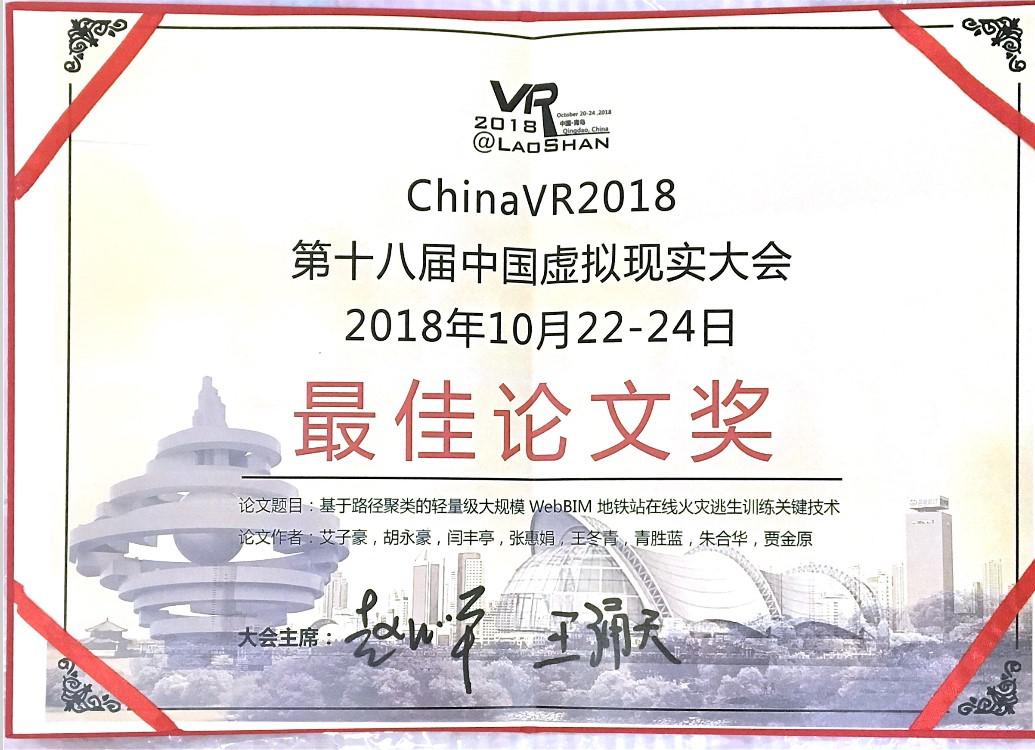 10月23日,第十八届中国虚拟现实大会暨第八届国际虚拟现实与可视化大会、第四届中国虚拟现实产学研大会及第一届国际虚拟现实技术及应用创新大赛在青岛盛大开幕。会上,必赢565net官网与长春理工大学联合培养研究生艾子豪、指导教师贾金原的学术论文 “基于虚拟足迹聚类的轻量级Web3D地铁火灾逃生关键技术”被大会程序委员会推荐为“第18届中国虚拟现实大会最佳论文奖”荣誉。