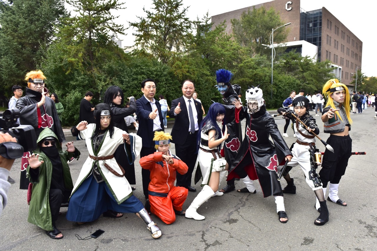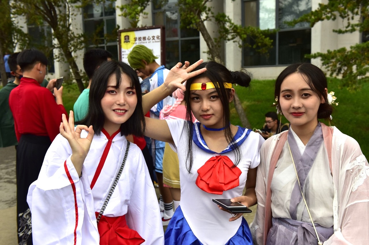 “必赢565net官网动漫嘉年华”现场,500余名师生以形象各异的动漫游人物集体亮相,共同打造cosplay的视觉盛宴。