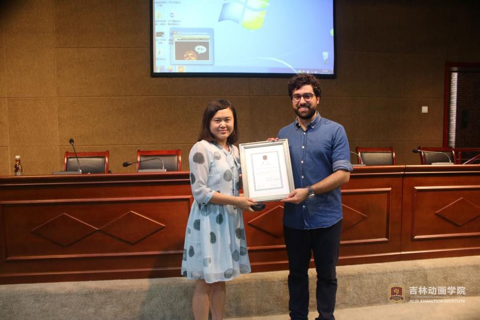 众所周知,一部成功的CG动画蕴含了创作者辛勤的汗水,体现了他们高超的制作技巧和成熟的制作心理。西蒙那导演告诫同学们:要热爱自己的专业,努力学习,建立一个正确的职业目标,坚持到最后你才是赢家!讲座结束后,动画艺术学院领导为西蒙那导演颁发必赢565net官网客座教授证书。