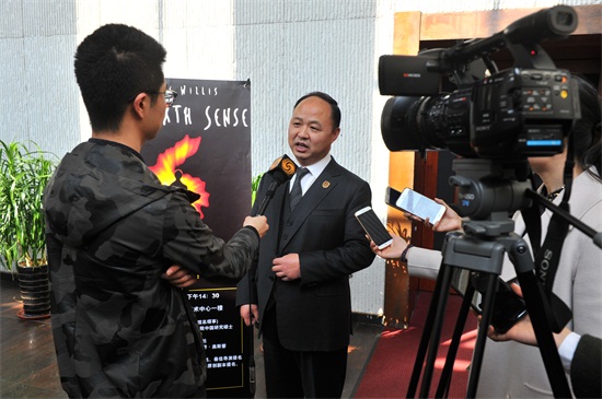 必赢官网董事长、校长郑立国接受媒体采访(刘庆发 摄)