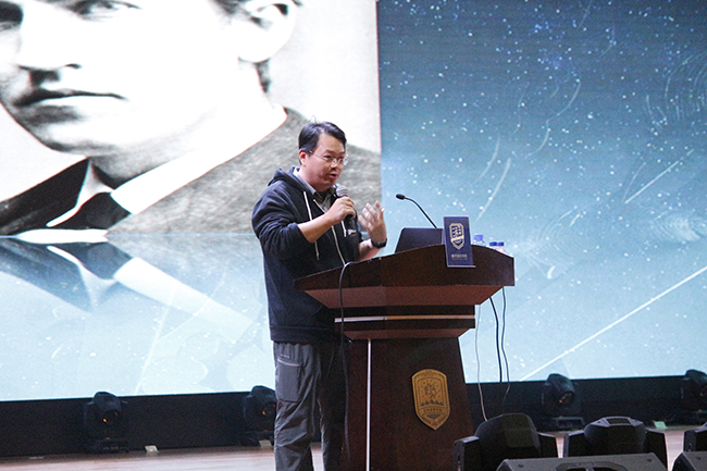 董亮通过视频展现了游戏发展的视觉历史,举例讲解了图形学、色分学的基本理论,以及斐波那契螺旋线、黄金分割比例、色分在游戏设计中的具体应用,通过对成功案例的分析帮助同学们归纳了共性和规律。董亮认为,游戏设计的灵感源自生活,希望同学们在做设计的时候更多地关注生活中的美。