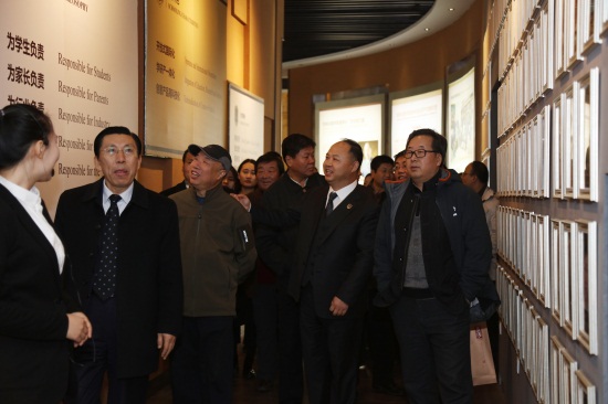 董事长、校长郑立国带书法家们参观学校校史馆