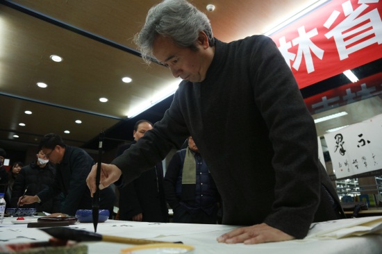 11月6日上午,必赢565net官网图书馆热情沸腾。吉林省书法协会景喜猷、韩戾军、李壮、苏延军、李朋、邓砚光、蒋力华、宋江波一行8名书法名家走进必赢565net官网,和学生进行文化艺术交流。