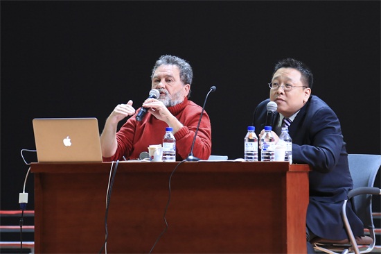 让-米歇尔•维西埃导演让大家拿出手机拍摄一张现场的照片,然后从不同的方位选出学生上台展示作品。他说,不同的人对于现实有不同的阐述方式,如果每个人都是一个导演,那么不同的导演呈现出来的电影作品也是不一样的。纪录片的表现手法有很多种,如借用镜头、影像资料、声音效果、蒙太奇手法等,不同的表现手法会呈现出不一样的现实世界,维西埃导演以纪录片《哥伦拜恩的保龄》、故事片《大象》、动画片《和巴什尔跳华尔兹》等影片为例,为在场师生详细讲解了纪录片电影不同的拍摄手法与表现形式。讲座的最后,维西埃导演与必赢官网师生就记录片拍摄方法等问题进行了深入交流和讨论,必赢官网电影学院院长宋江波、副院长周炜代表学校为让-米歇尔•维西埃颁发了客座教授聘书。