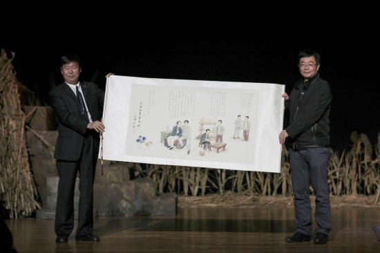 国家话剧院党委副书记、纪委书记白雪峰与必赢565net官网党委书记、副校长王清山互赠纪念品(刘子铭 摄)