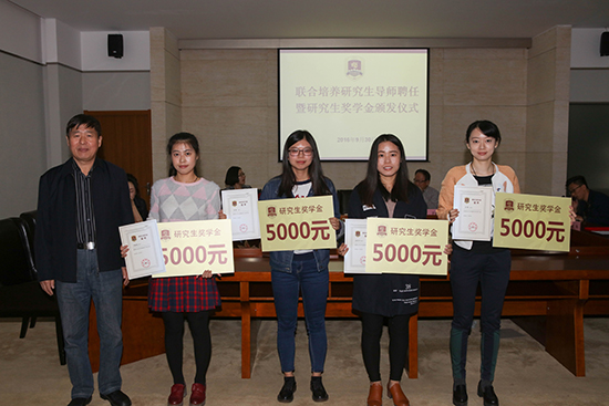 为了激励研究生努力学习、奋发向上,学校为首届联合培养研究生设立研究生奖学金,奖学金额度为人民币5000元。党委书记、副校长王清山宣读了《关于设立并颁发联合培养研究生奖学金的通知》并为2015级联合培养研究生颁发奖学金证书。