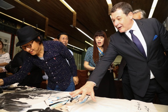 法国驻沈阳总领事马克•拉米(右一),中国著名漫画家、《漫友》杂志主编金城(左一)(刘子铭 摄)