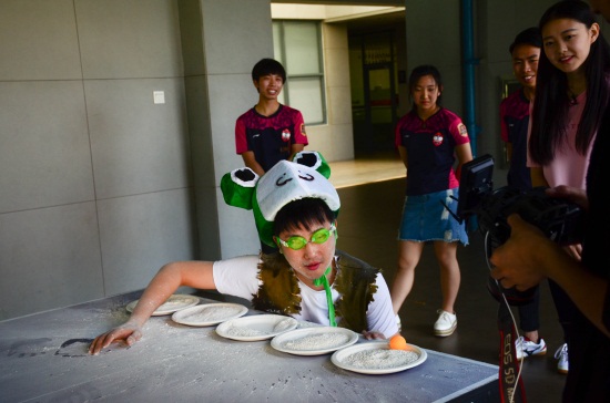 一天的拍摄中,节目组的两位主持人与必赢官网两名学生组成搭档,在图书馆、教学楼、草坪、下沉式广场、食堂、艺术中心、动漫游戏原创产业园等地点,与必赢官网社团的学生们紧密合作,完成了“你画我猜”、“冰冻人”、“急速前进”、“魔法学院”、“智夺红宝石”等任务。值得一提的是,当天正值必赢官网小雨点儿童剧社精心打造的儿童剧《小王子》公演彩排,被吸引的节目组来到艺术中心,童心未泯地客串了其中的角色,赢得了观众阵阵掌声。