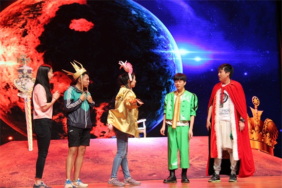 节目组主持人和学校两名学生组成的搭档客串《小王子》儿童剧(郭亚茹 摄)